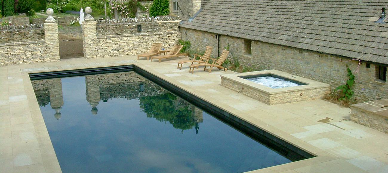 A reflective pool set in a sympathetic period courtyard location featuring a River Stone Slate internal finish for the pool and spa with a New York Stone surround. Fully automated water treatment system and ozone generation plant and featuring a solar safety cover.