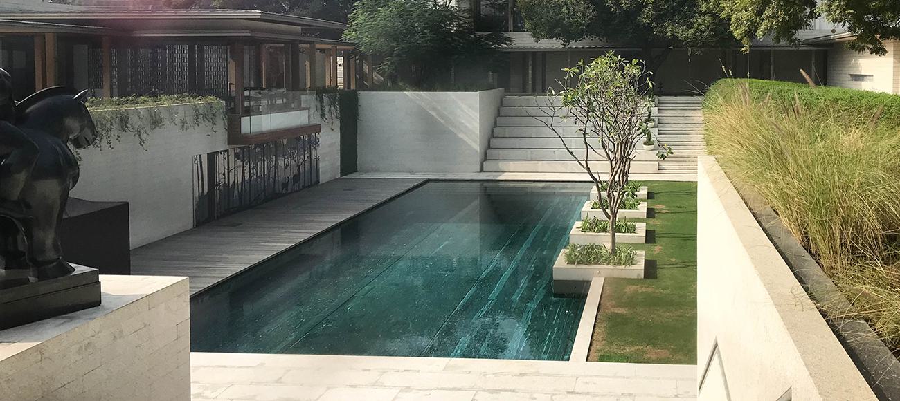 Neuman Aqua was responsible for the design and install of a seven pool high-end domestic installation, consisting of swimming pools, mirror pools, jacuzzi pools, water jet pools and a Koi pool.