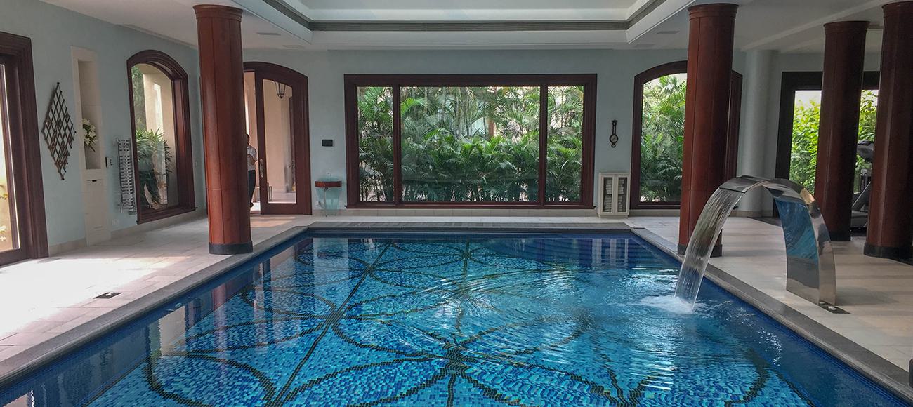Designed and supplied three outdoor fountain systems, provided and installed a motorised pool and bespoke jacuzzi covers and water feature for an existing swimming pool as well as the design for a poolside aquarium.